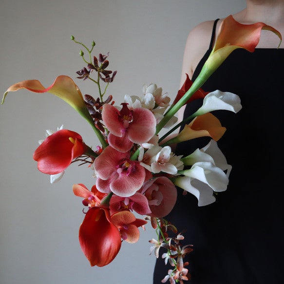 ドレスの色味や結婚式全体の雰囲気に合わせて、一から仕立てる完全オーダーメイドのブーケ。特別な一日に寄り添う一点ものとして人気を集めています。