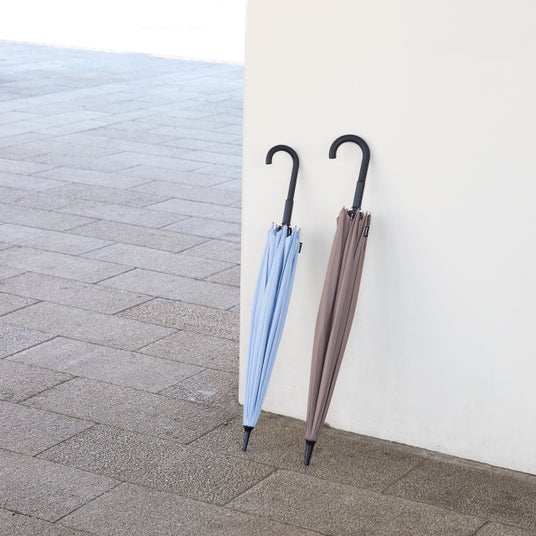 ベルトや留め具のない、閉じるだけで一気にたためる長傘です。
