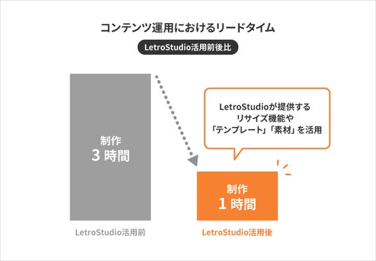 LetroStudio単独でコンテンツ制作が可能となったため、1時間まで短縮しています。また、コンテンツ制作スピードが向上したことから