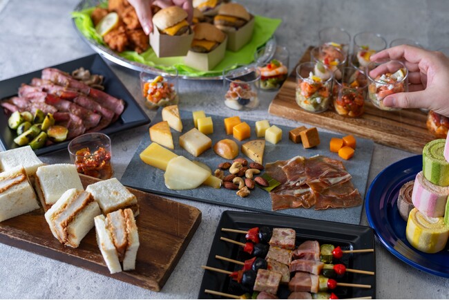 nonpi foodbox(R)の「nonpi foodbox(R) for office」は、サービススタッフを派遣せずに商品をお届けするだけのデリバリー型サービスで、小分け・フィンガーフードをメインとした、サイズ感や彩りにもこだわった料理を取り揃えており、そのままテーブルに並べるだけの簡単。ドリンクもどぶ漬け状態でキンキンに冷やされた状態で届くので、冷蔵庫不要でそのまま乾杯ができます。