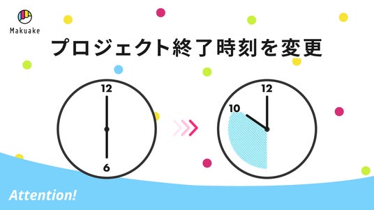また、サポーターの体験においても、これまでのプロジェクト終了時刻であった18:00は、一般的な企業の営業時間に重なっていることから、「プロジェクト最終日まで慎重に検討し、退勤後に『Makuake』にアクセスしたらプロジェクトが終了していた」などの買い逃しに関する声が寄せられていました。プロジェクトの終了時刻を後ろ倒しすることで、こうした声に応え、サポーター体験の満足度向上につなげることを目指します。