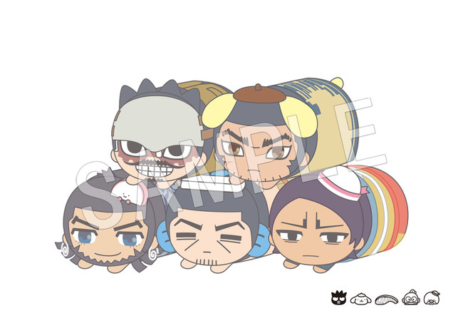 ラインナップ:杉元×シナモロール、アシ(リ)パ×マイメロディ、白石×おさるのもんきち、土方×クロミ、尾形×ハローキティ(全5種)