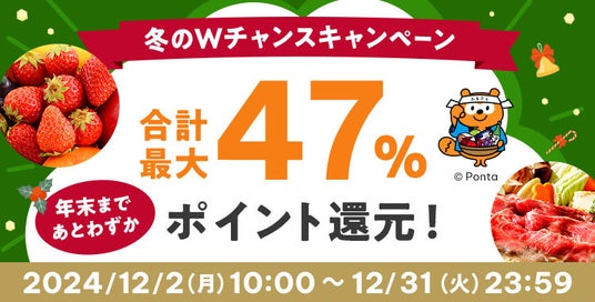 auコマース&ライフとauフィナンシャルサービスは、KDDIが運営する「au PAY ふるさと納税」において、2024年12月2日から12月31日までの期間、最大30%のポイントを還元する「冬のWチャンスキャンペーン(以下、本キャンペーン)」を開催します。