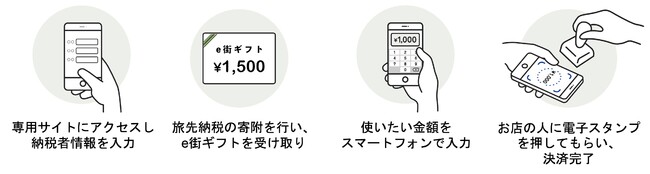 (※3) 旅先納税システムは、その街に触れて、共感したその場でスマホからできるふるさと納税「旅先納税」を実現するシステムです。e街ギフトとの併用によって、これまで返礼品の恩恵を受けづらかった地域の飲食店や観光施設で利用できる地域商品券を即座にスマホに返礼品としてお届けし、リアルタイムな地域還流を実現できます。また、「旅先納税」はギフティの登録商標です(2021年1月商標登録済み)