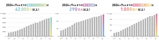 その結果、サービス開始から約11年で累計の応援購入総額が1,000億円を突破、累計会員数は290万人を超え、多くの実行者とサポーターが出会える場となっています。