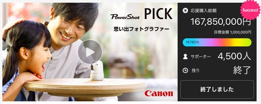 新しい顧客価値を提供する商品の導入に取り組む場合、投資の費用対効果を見極めることが困難です。しかし、「Makuake」をテストマーケティングの場として活用することで、本発売を前にお客様の反響を把握することができ、前例のない商品を導入する為の新たなマーケティング手法を確立できました。「PowerShot PICK」においては、当時の「Makuake」史上最速で1億円という記録的な応援購入を達成することで、商品の話題化の連鎖を達成できました。