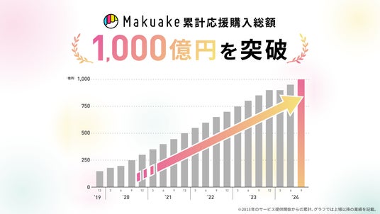 株式会社マクアケ(以下、当社)は、2013年8月に開始したアタラシイものや体験の応援購入サービス「Makuake(マクアケ)」の累計応援購入総額が1,000億円を突破したことをお知らせします。