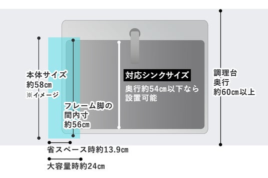 2■省スペースだからシンク広々シンク横の隙間に設置でき、省スペースながら、
