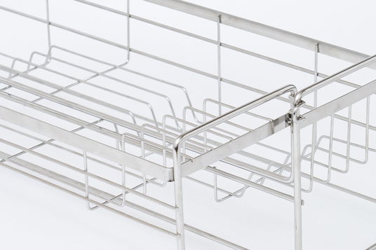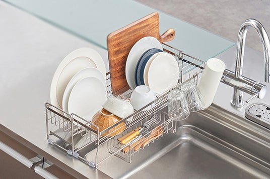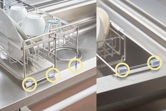 かごのサイズが伸縮式でスリムにも大容量にもなる、便利な水切りディッシュラックが登場。