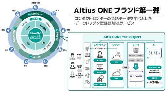 新ブランド「Altius ONE」は、デジタル化により集積されるデータを戦略的に活用し、マーケティングからカスタマーサクセスまで、購買プロセスにおける顧客接点の高度化、それに伴うバックオフィス業務など、包括的な企業活動におけるビジネス課題の解決を目指すものです。第一弾となる「Altius ONE for Support」では、国内最大規模のコンタクトセンターリソースとなる年間5億件超の応対データ※3を活用し、これらのVoC(お客様の声)をはじめとする多様なデータを、オペレーションノウハウとデジタル技術を活用した分析・インサイト抽出を通じて、経営の意思決定のスピードを加速させ、新たなお客様体験の創出を実現します。