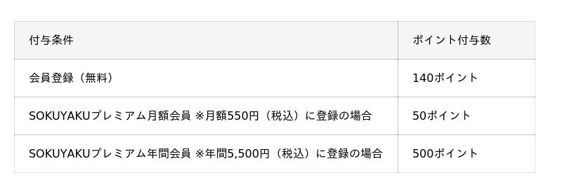 価格 :登録料、年会費無料、「SOKUYAKUプレミアム」プラン 月額550円(税込)