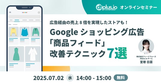 株式会社フィードフォース(所在地:東京都港区、代表取締役:塚田 耕司、以下「フィードフォース」)が提供する、マーケターのためのデータフィード管理ツール「dfplus.io」は、無料オンラインセミナー「Google ショッピング広告の「商品フィード」改善テクニック 7 選」を 2025 年 7 月 2 日(水)に開催いたします。