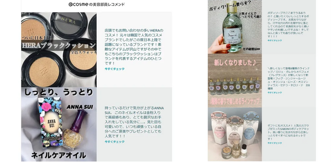(2)コスメ・美容のプロ目線の情報を掲載する「@cosmeの美容部員レコメンド」
