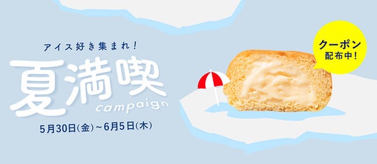 「アイス好き集まれ!夏満喫キャンペーン」と題し、凍ったまま食べる新感覚くりーむパン「まるでアイスなくりーむパン」を含む対象セットをご購入いただくと、八天堂オンラインショップで使える『リピートクーポン』を贈呈します。
