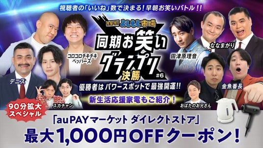 auコマース&ライフは、総合ショッピングサイト「au PAY マーケット」アプリ内のライブコマースサービス「ライブTV」のレギュラー番組である「生配信!よしもと市場」において、結成同期のよしもと芸人によるネタバトル「同期お笑いグランプリ(以下、本グランプリ)」の決勝大会を2025年3月10日午前7時30分より配信します。