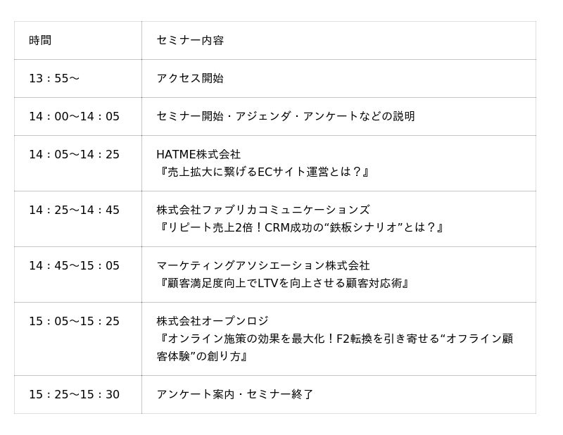 本セミナーでは、多くの成功事例を持つ4社から、オンライン・オフラインを組み合わせた最新の顧客コミュニケーション術をご紹介します。ぜひご参加ください!