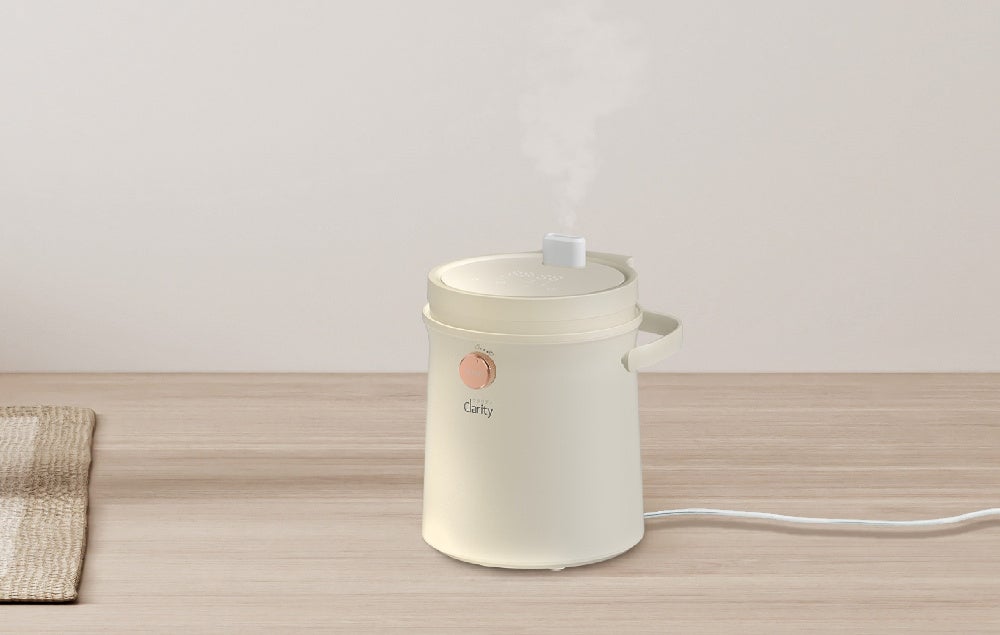 そうした課題に対応する製品として、お手入れのしやすさと設置しやすいコンパクトサイズを両立しながら、パワフルな加湿を実現したクラリティのスチーム式加湿器「クリーンポット」です。