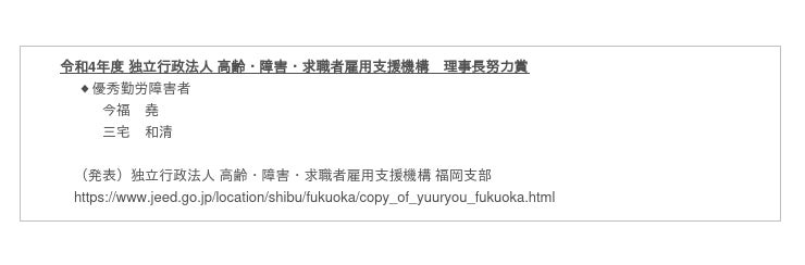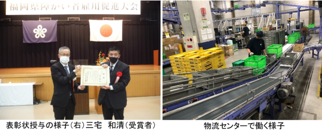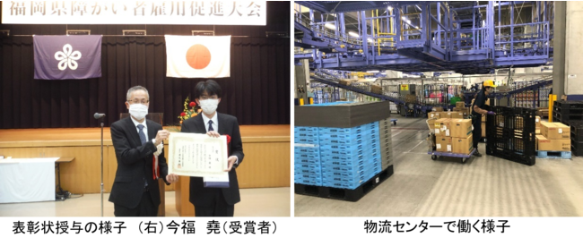 アスクル株式会社 100%子会社の ASKUL LOGIST 株式会社(本社:東京都江東区、代表取締役社長:天沼英雄、以下「アスクルロジスト」)が運営する福岡物流センター(以下「福岡センター」)に勤務するスタッフ2名がこのたび、(独)高齢・障害・求職者雇用支援機構の行う「令和4年度障害者雇用優良事業所等表彰」において、優秀勤労者として「理事長努力賞」を受賞し、10月31日に同受賞式が行われました。本表彰制度は、独立行政法人 高齢・障害・求職者雇用支援機構が毎年 9 月の障害者雇用支援月間に、障がい者の雇用促進と職業の安定を図るために開催しているものです。