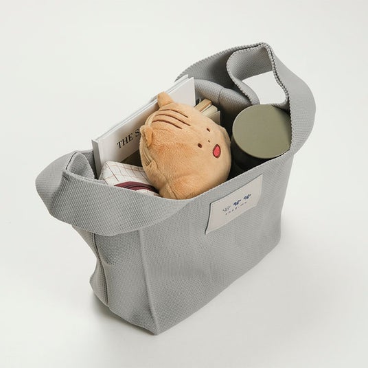 「冬らしいグレーのニットバッグに、心まであたたまるおやつを添えて。厚手のニット地でマチもしっかり、見た目以上にたっぷり入るのも嬉しいポイント。小さなリスのロゴがさりげない可愛さを添えてくれて、毎日のおともにぴったり。寒い季節を、やさしいぬくもりと一緒にお楽しみください。」