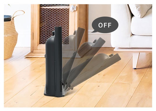 本体が倒れると運転が止まる転倒オフ機能搭載のあんしん設計で、小さなお子様やペットがいるご家庭でも安心してお使いいただけます。