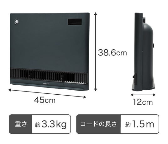 ■幅12cm+タッチパネルのスリム設計本製品の幅は12cm、コントロール部はシンプル操作のタッチパネル式で凹凸がなくスリムな設計となっており、使用しないときや一時的に片付けたいときにお部屋のちょっとした隙間へ収納できます。取っ手つきで持ち運びもお手軽なので、キッチンでの立ち仕事や脱衣所のヒートショック対策、オフィスでのデスクワーク、お子様のお部屋などにおススメです。