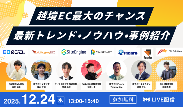 WorldShopping BIZを提供する株式会社ジグザグ(本社:東京都渋谷区、代表取締役:仲里一義)は、株式会社WUUZY主催のオンラインセミナー「越境EC最大のチャンス! 最新トレンド・ノウハウ・事例紹介」に登壇いたします。本セミナーは、2025年12月24日(水)に開催され、参加は無料です。