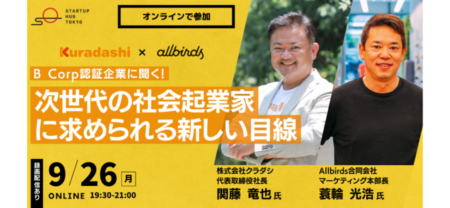 https://corp.kuradashi.jp/news/22-07-06-3/イベント概要・タイトル:B Corp認証企業に聞く!次世代の社会起業家に求められる新しい目線