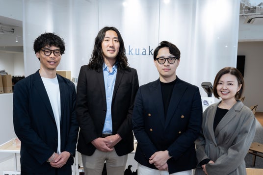 写真左から:菊地(マクアケ)、小林氏(楽天)、市村氏(楽天)、鳥之海(マクアケ)