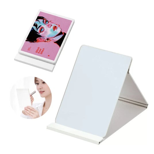 折りたたみスタンドミラーは、軽量で持ち運びやすく、外出先でも気軽に使えるコンパクトミラーです。さらにスタンド機能を搭載しているため、卓上でも使用できる便利な2WAY仕様。ノベルティやイベント配布、販促グッズとして高い人気を誇り、女性向けイベントや美容関連プロモーションにも最適です。