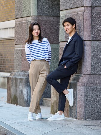 作業着スーツ、カカトが踏める革靴に次ぐ本商品は、「白スニーカーは雨の日に履くのを躊躇してしまう」というお客様の声から、ビジネスシーンでもカジュアルでも着用でき、簡単に洗えて汚れにくく、清潔感のある白さが続くスニーカーを開発いたしました。