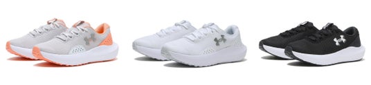 ●UA CHARGED SURGE 4加える力の大きさに応じて、柔らかいクッションから鋭い反発まで弾力性が変化するクッションフォーム「CHARGED(チャージド)」を搭載したランニングシューズです。高いクッション性と快適性がありながら、最後までペースを落とさずに走り切るために必要な、軽さと通気性を備えています。耐久性の高いラバーを使用し、屈曲とトラクションを考慮したアウトソールパターンに加え、足の形にフィットするデラックスフォームソックライナーが、足の動きによるスリップを防ぎ、足裏を快適にキープします。