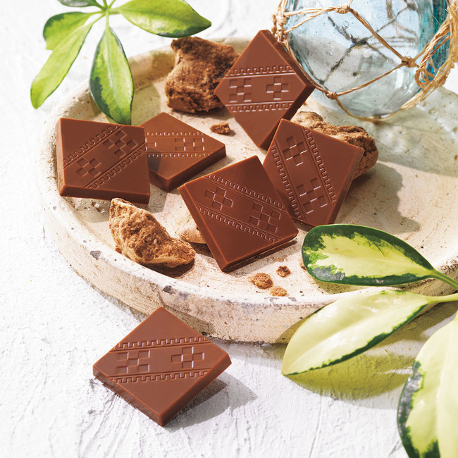 沖縄県産の黒糖の素朴なおいしさが広がる沖縄県産の黒糖を使ったチョコレート。黒糖の素朴なおいしさがチョコレートととけ合う、深みのある味わいです。