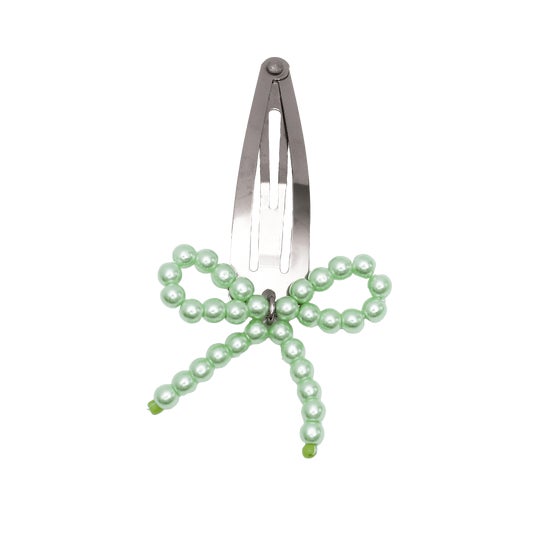 夏らしいカラービーズが目を引くリボンピン。
