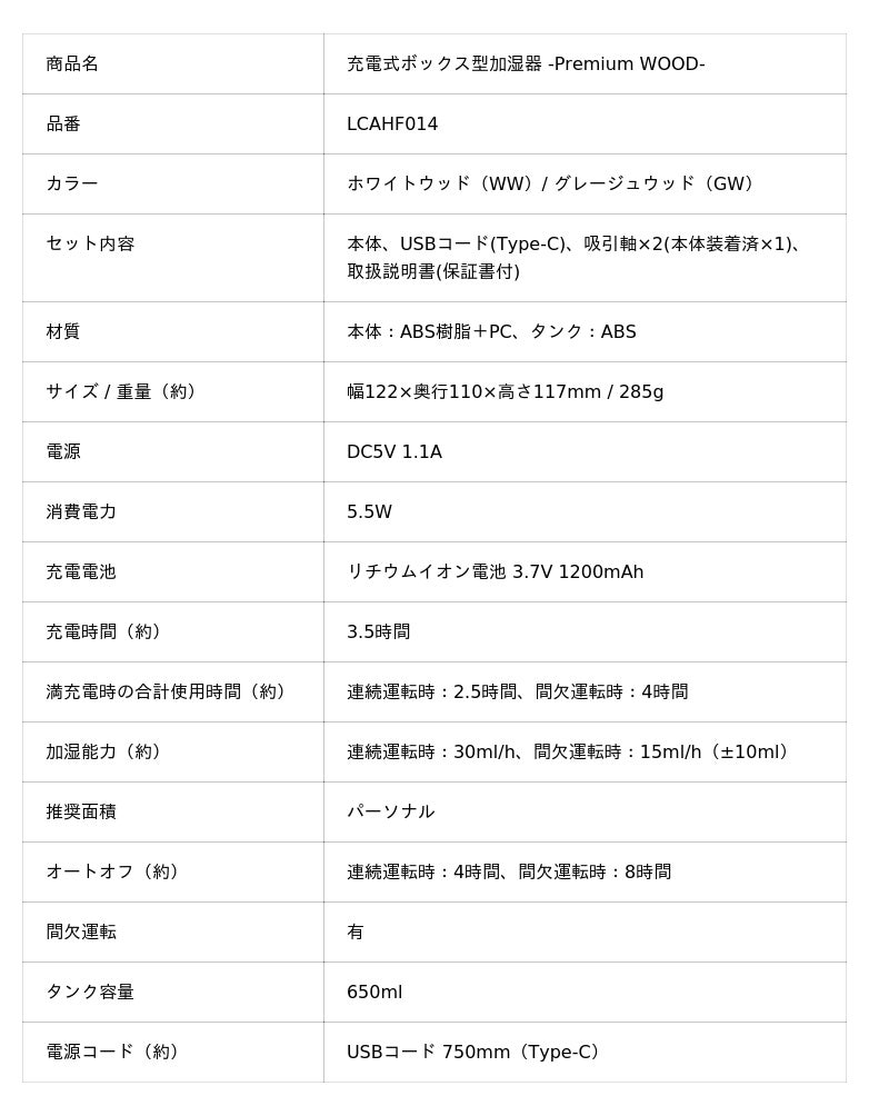 「充電式ボックス型加湿器 -Premium WOOD-」LCAHF014