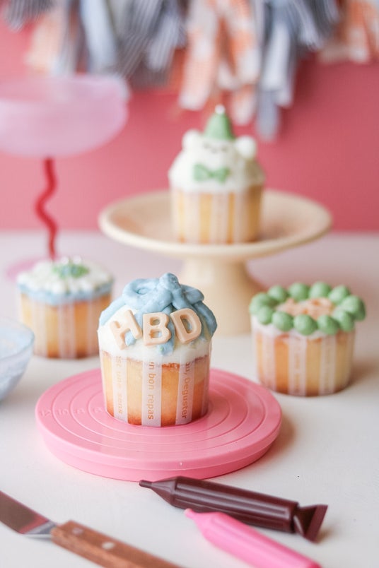 デコレーション色素別売りの、5cmサイズのカップケーキが4つ作れます