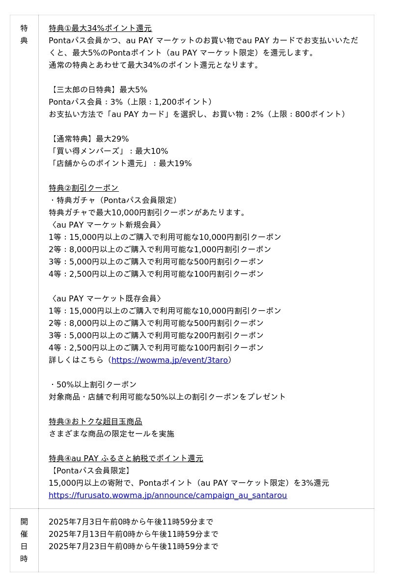 ■三太郎の日特典について(3日・13日・23日共通)(https://wowma.jp/event/3taro)