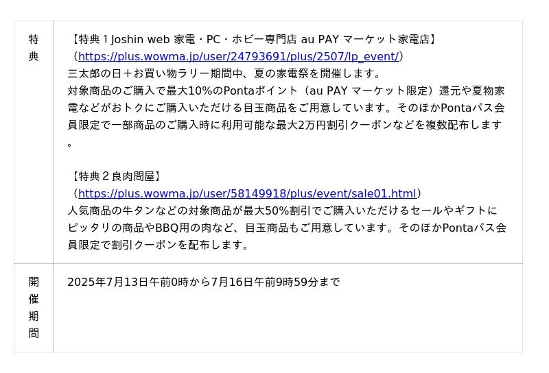 ~7月は、日用品から家電、グルメなど人気店舗とのコラボレーションでもっとおトク~