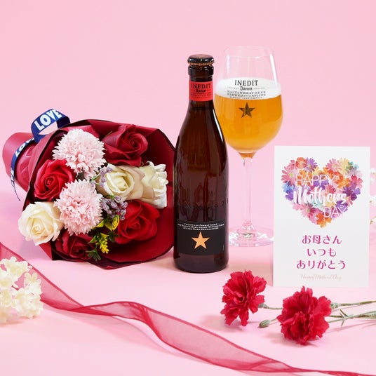 選べるソープフラワー&高級ビール「イネディット」セット昨年ご好評いただいたフラワーギフトが今年も登場。感謝の気持ちがより伝わる母の日カード付きにパワーアップいたしました。