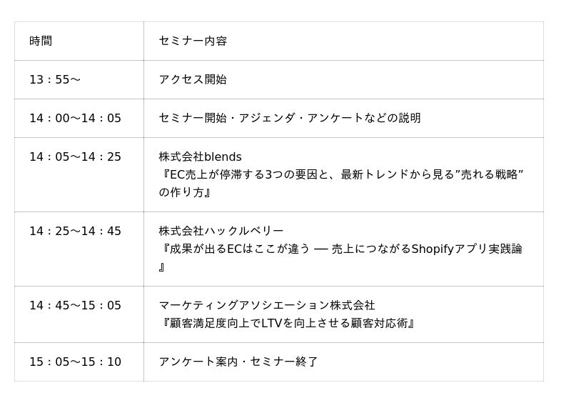 ECサイトの運営代行サービスを提供しているマーケティングアソシエーション株式会社(本社:東京都台東区 代表取締役:中園広和、以下当社)は、2026年3月25日(水)に、マーケティングアソシエーション株式会社主催のウェブセミナー【売上が伸びていても要注意!Shopifyでハマりがちな“成長の落とし穴”と突破戦略 ~集客設計×CVR・LTV改善×顧客対応~】を開催します。