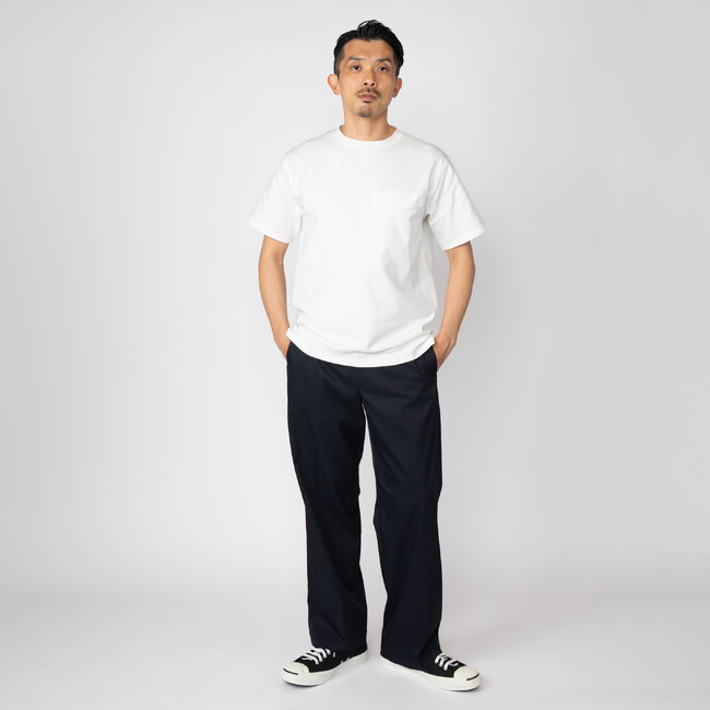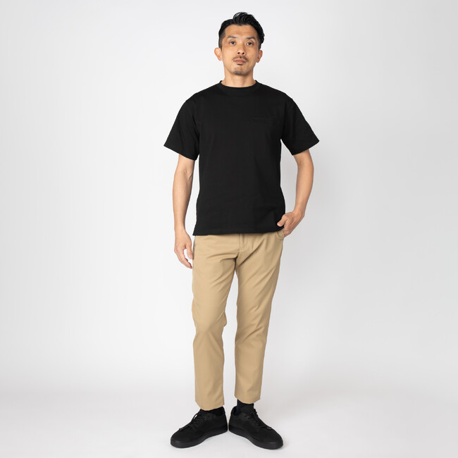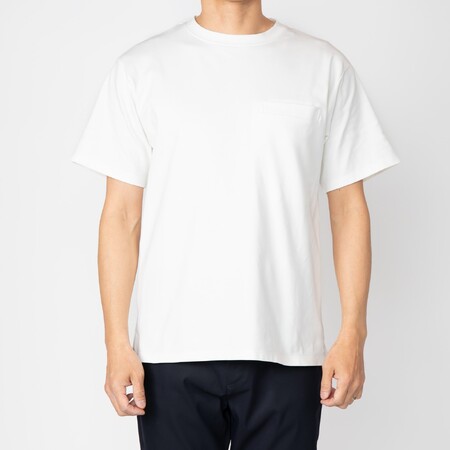 洗濯後でもよれず型崩れしない肉厚でハリのある生地感とストレスフリーな着心地を実現。さらに摩擦に強い抗ピリング加工を施すことで