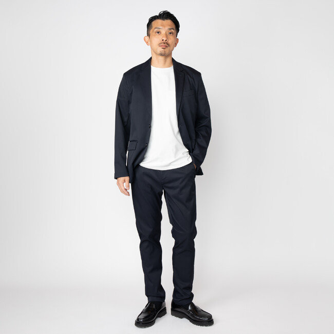 サスティナブルブランド「FORTUNA HOMME/フォルトゥナオム」とのコラボ商品です。高級ブランドにも採用される素材開発技術を生かした上質なFORTUNAオリジナル生地を使用し、なめらかで柔らかい風合いと快適さを兼ね備えた1着に仕上げました。