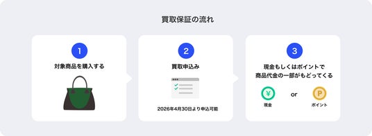 株式会社エニグモ(代表取締役最高経営責任者:須田将啓 本社:東京都港区、東証プライム:証券コード 3665)が運営するスペシャルティ・マーケットプレイス『BUYMA(バイマ)は、購入時に将来の買取金額を保証する新サービス「買取保証」を開始しました。本サービスは、保証期間内であれば商品を使わなくなったタイミングで買取申込みをするだけで、ご購入代金の一部が確定金額で戻ってくる仕組みです。金銭的なリスクを軽減して、「万が一使わなくなってもあんしん」という新しい購買体験を提供いたします。