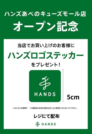 ●ハンズロゴステッカーをプレゼント!リニューアルオープンを記念して、ハンズあべのキューズモール店でお買い上げのお客様に、ハンズの新しいロゴステッカーをプレゼントいたします。
