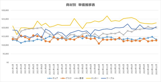 株式会社オフィスバスターズ(東京都中央区 代表取締役社長:熊谷 正慶 以下当社)は、2023年12月度の中古オフィス家具指数を取りまとめました。毎月当社の中古オフィス家具動向を広く皆様へお伝えすることで、当社をご利用いただいた法人及び個人の方々の動向や推移などをご案内しています。