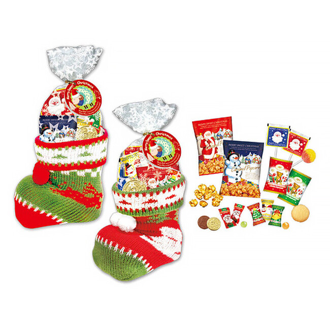 クリスマスソックスブーツ L 【店頭限定販売】 972円https://hands.net/goods/4932515029626/暖かさを感じる手編み風のクリスマスブーツにポップコーン、焼菓子、ロリーポップキャンディ、アップルキャンディ、オレンジキャンディ、チョコレートがつまったバラエティセットです。