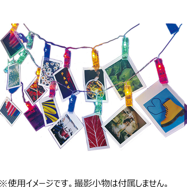 クリップライト RGB CSL021 2,200円https://hands.net/goods/4942792518904/洗濯ばさみ形のLEDが20個連なったロープ状のライト。写真や飾りを挟んで使用でき、家族写真やお気に入りの写真を飾ることで部屋を華やかに彩ることができます。
