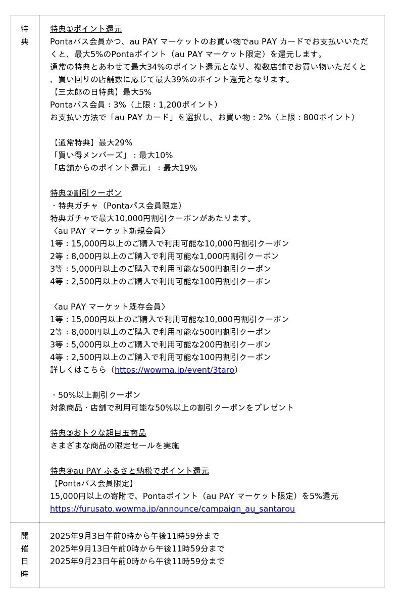■三太郎の日特典について(3日・13日・23日共通)(https://wowma.jp/event/3taro)