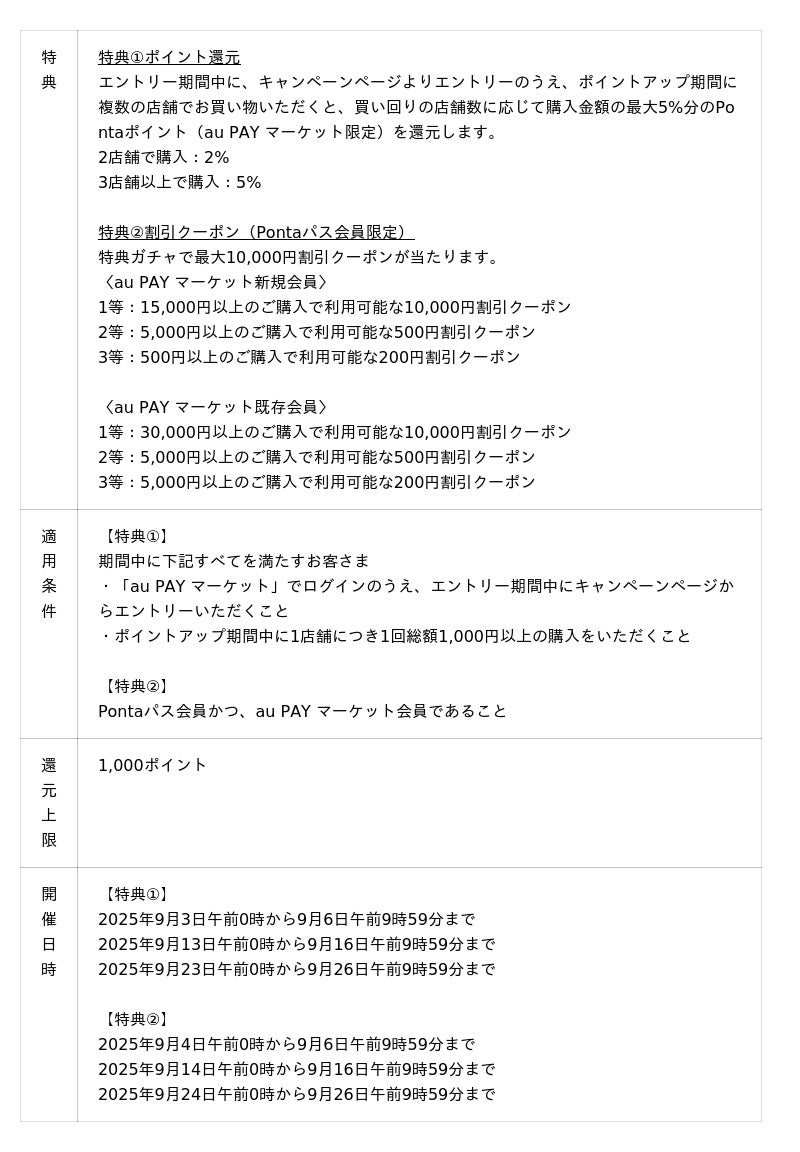 auコマース&ライフ株式会社~3店舗買い回りで合計最大39%ポイント還元や最大1万円クーポンがあたる特典ガチャも~
