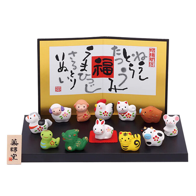 薬師窯 錦彩招福十二支飾り 3,080円・ほっこりした表情が可愛い、にぎやかな十二支飾りです。