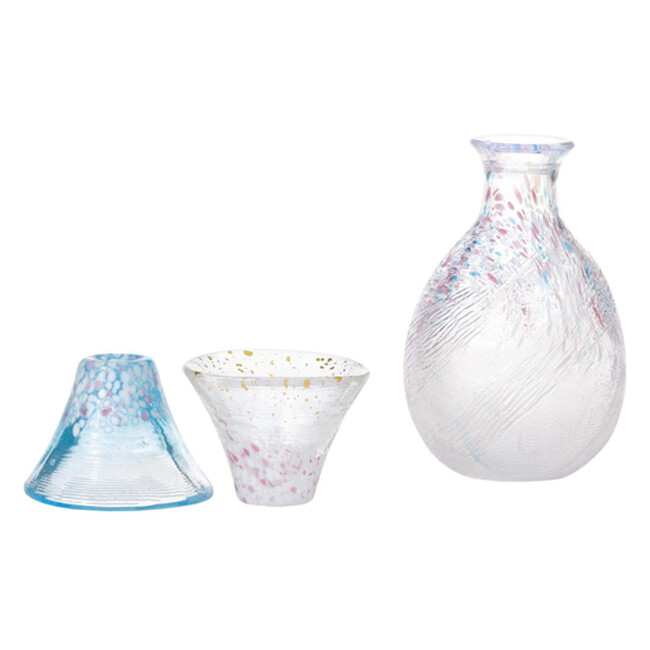 東洋佐々木ガラス 桜富士 酒器セット 6,600円・縁起の良い名峰富士山をモチーフにしたハンドメイドの冷酒用酒器セットです。
